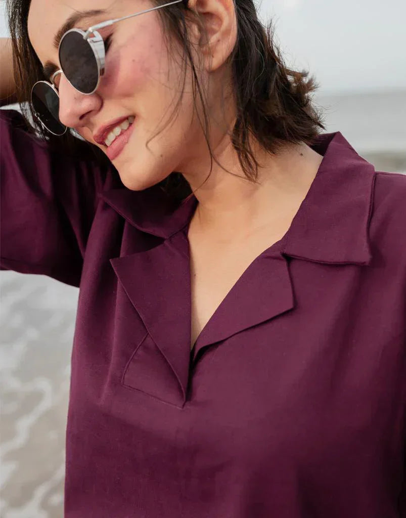 Turn heads in our Mulberry Wine Shorts and Top Co-Ord Set — where comfort meets contemporary style. Crafted with care from soft, hand-loomed cotton, this fashion-forward ensemble is perfect for making a statement. The top features a stylish polo neckline and playful half sleeves, while the high-waisted shorts offer a flattering clinched fit and practical side pockets. With its straight silhouette and rich mulberry wine hue, this set is your go-to for effortless chic—whether you're out and about or just embracing your inner fashionista.